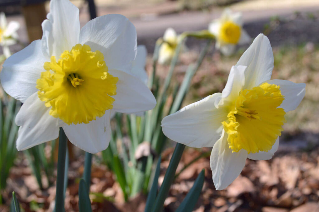 However, if your daffodils are sprouting in winter and you want to protect their leaves from freezing and browning, you can cover them with a layer of mulch. I sometimes use leaves that have fallen in my yard, but you can also use pine straw or even bark. If you had a natural Christmas tree, you can cut off the limbs and layer them on top of the bulbs as a protective layer.