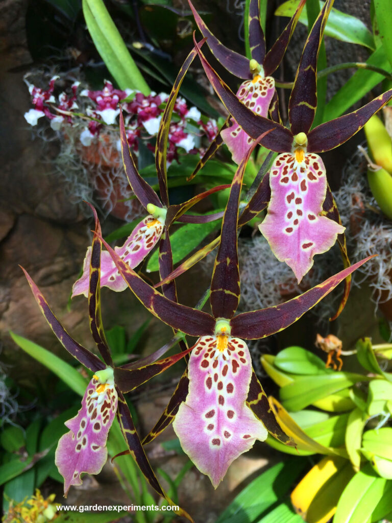 These orchids are all on the Leonard and Dora Rosenzweig Orchid Wall in the Tropical Conservatory at the gardens. The staff rotate these out – so you might not see the same ones there if you visit. I am unable to identify many of these. If you know what orchid is in one of these photos, please comment below. Thanks!